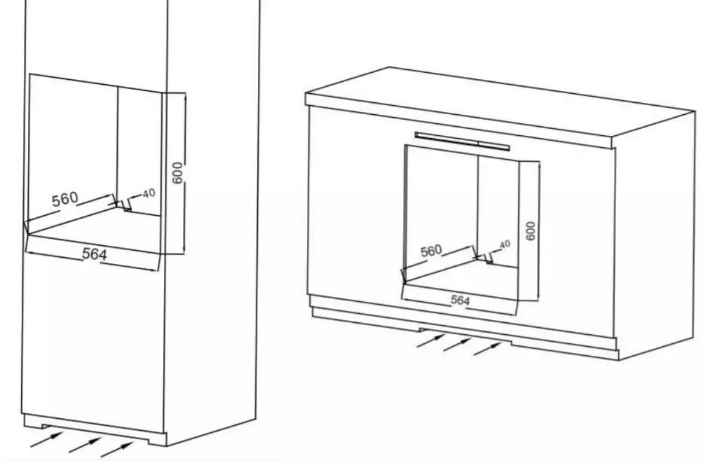 Габариты ниши для встраивания (В x Ш x Г), см