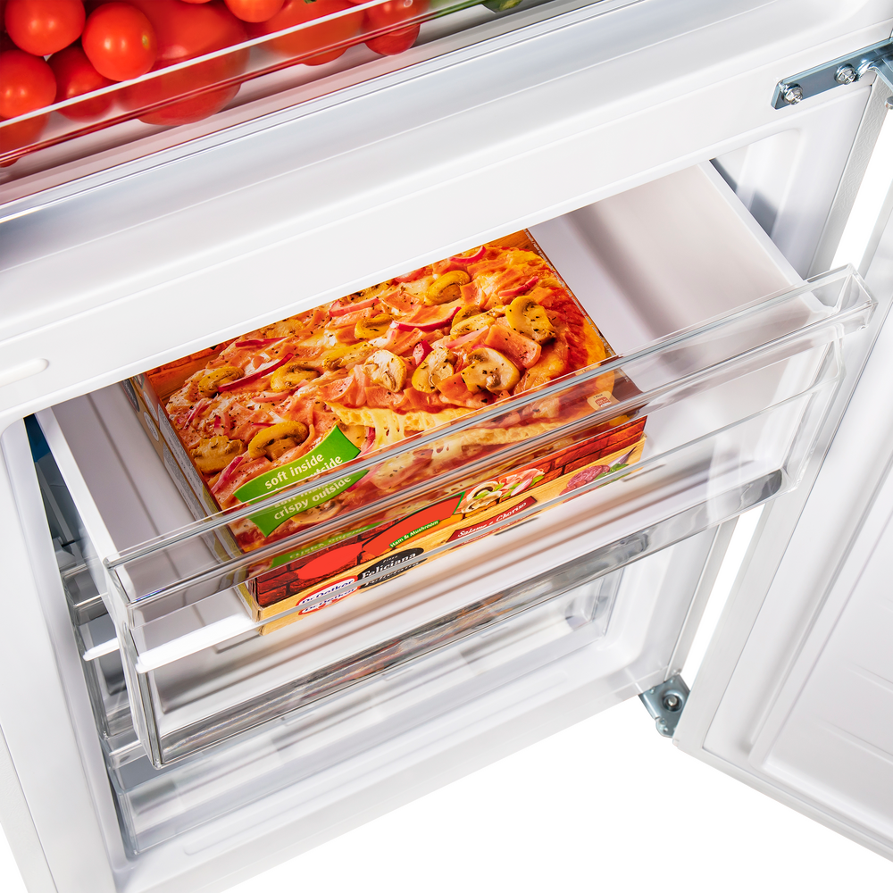 Холодильник MAUNFELD MFF185SFW — современное решение для семьи, где важны удобство и вместительность в стандартной нише 60 см. Белый корпус и лаконичный дизайн легко вписываются в интерьер, а продуманная организация полок и ящиков помогает держать продукты в идеальном порядке. При этом полезный объём 315 л позволяет хранить внушительные запасы без компромиссов.
