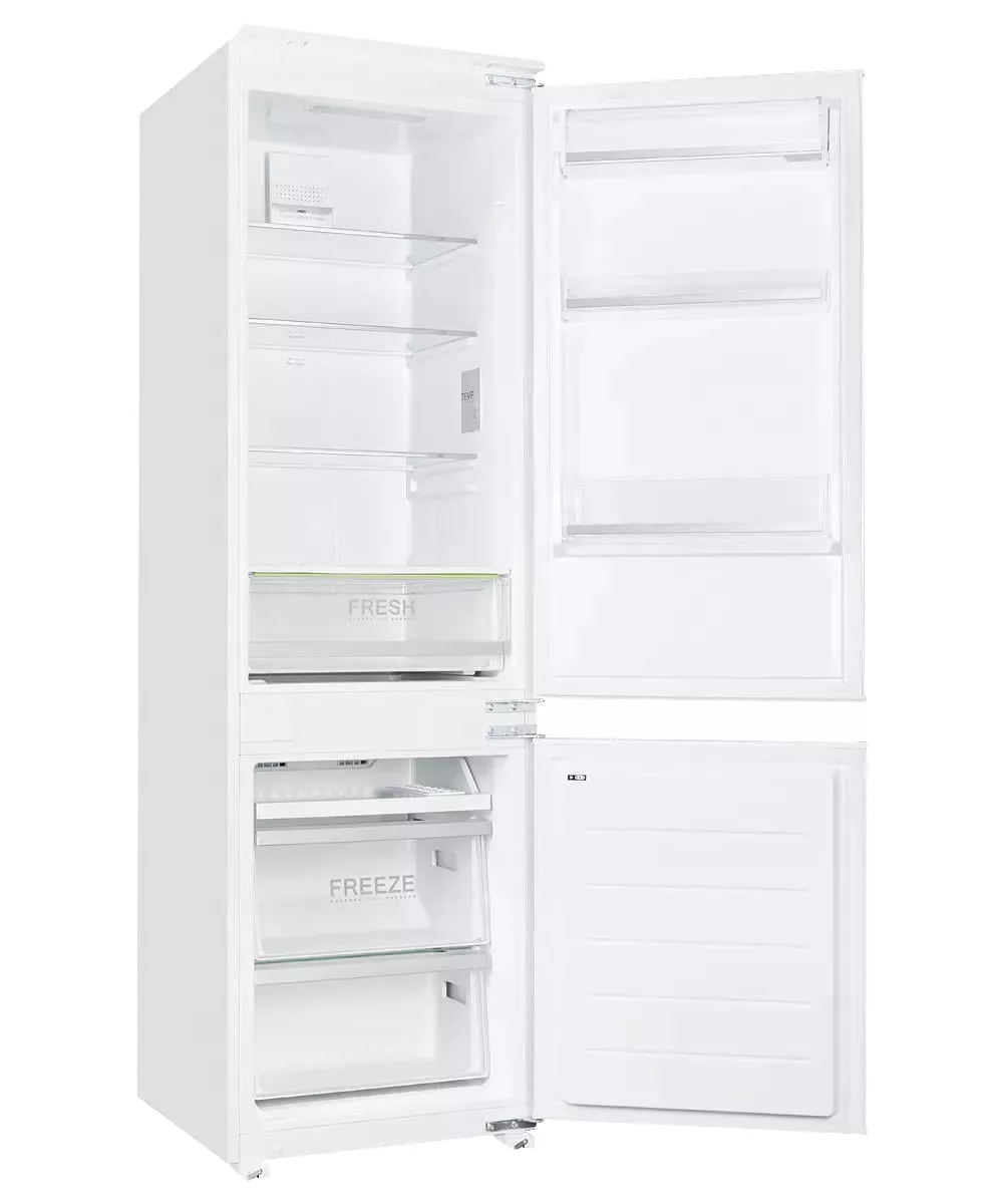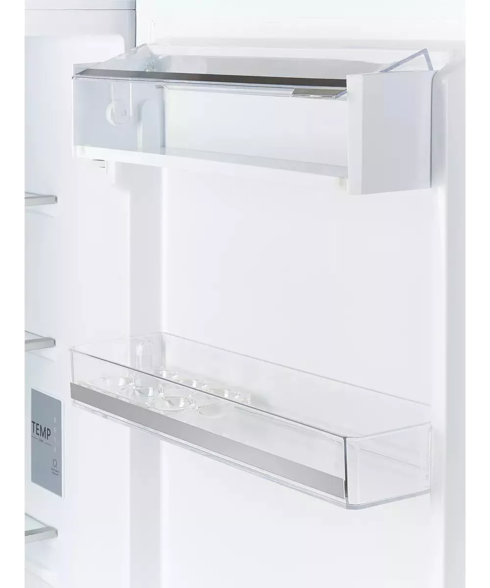 Двухкамерный холодильник Kuppersberg NBM 17863 относится к типу встраиваемых. Поэтому его фасад выполнен в классическом белом цвете, поскольку подразумевается, что он будет закрыт декоративной панелью кухонного гарнитура. Благодаря такому решению шум от работы будет значительно меньше. Кроме того, сам прибор функционирует при 41 дБ, что сродни негромкому разговору. Высота устройства достаточно большая - 179 см, поэтому общий полезный объём составляет 241 л.