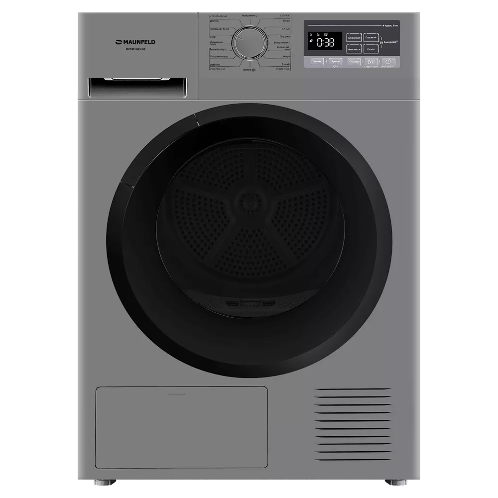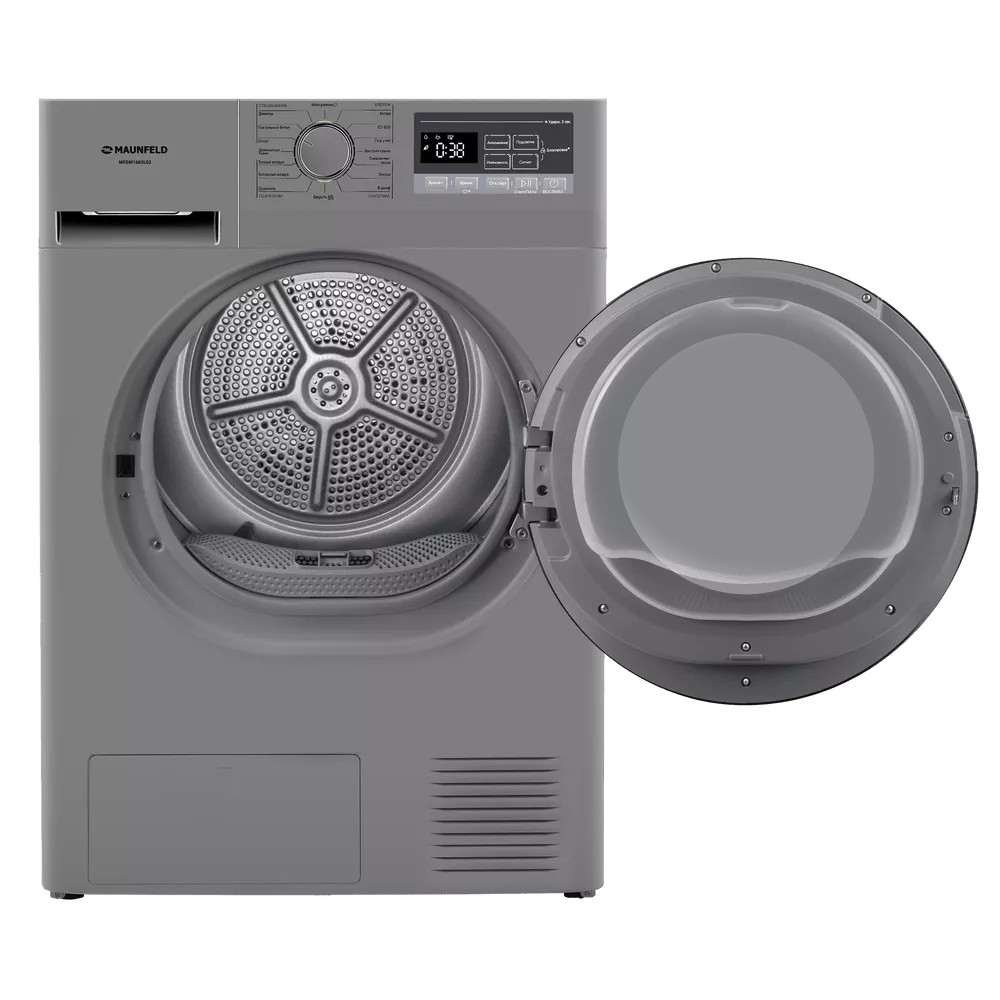 Сушильная машина с тепловым насосом бережно сушит бельё, экономит электроэнергию и оснащена датчиком влажности, антисмятием, функцией «Мой режим» и подсветкой барабана. Вместительный барабан рассчитан на 8 кг загрузки.