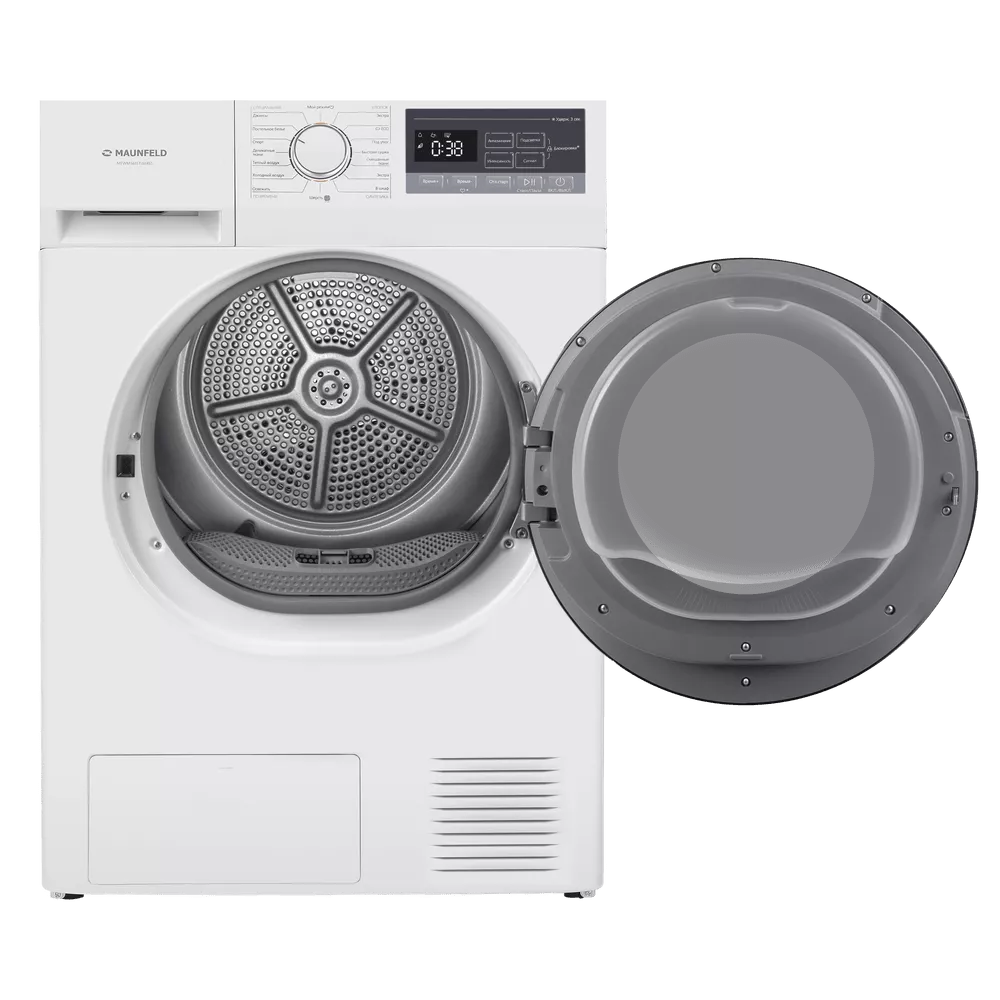Комплект Maunfeld включает стиральную машину MFWM148STWH02, сушильную машину MFDM168WH02 и соединительный элемент WM-SK03. Это современное решение, которое экономит пространство и обеспечивает полный цикл ухода за бельём — от стирки до сушки.