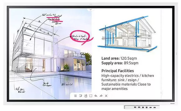 Продуманная организация сессий включает до 20 рабочих листов с удобным скроллингом и защитой конфиденциальных материалов. Платформа Tizen 5.0 и защита контента обеспечивают стабильную работу, автообновления и безопасное администрирование, а встроенные шаблоны (календарь, расписание, блокнот, список дел) упрощают ежедневные задачи бизнеса.