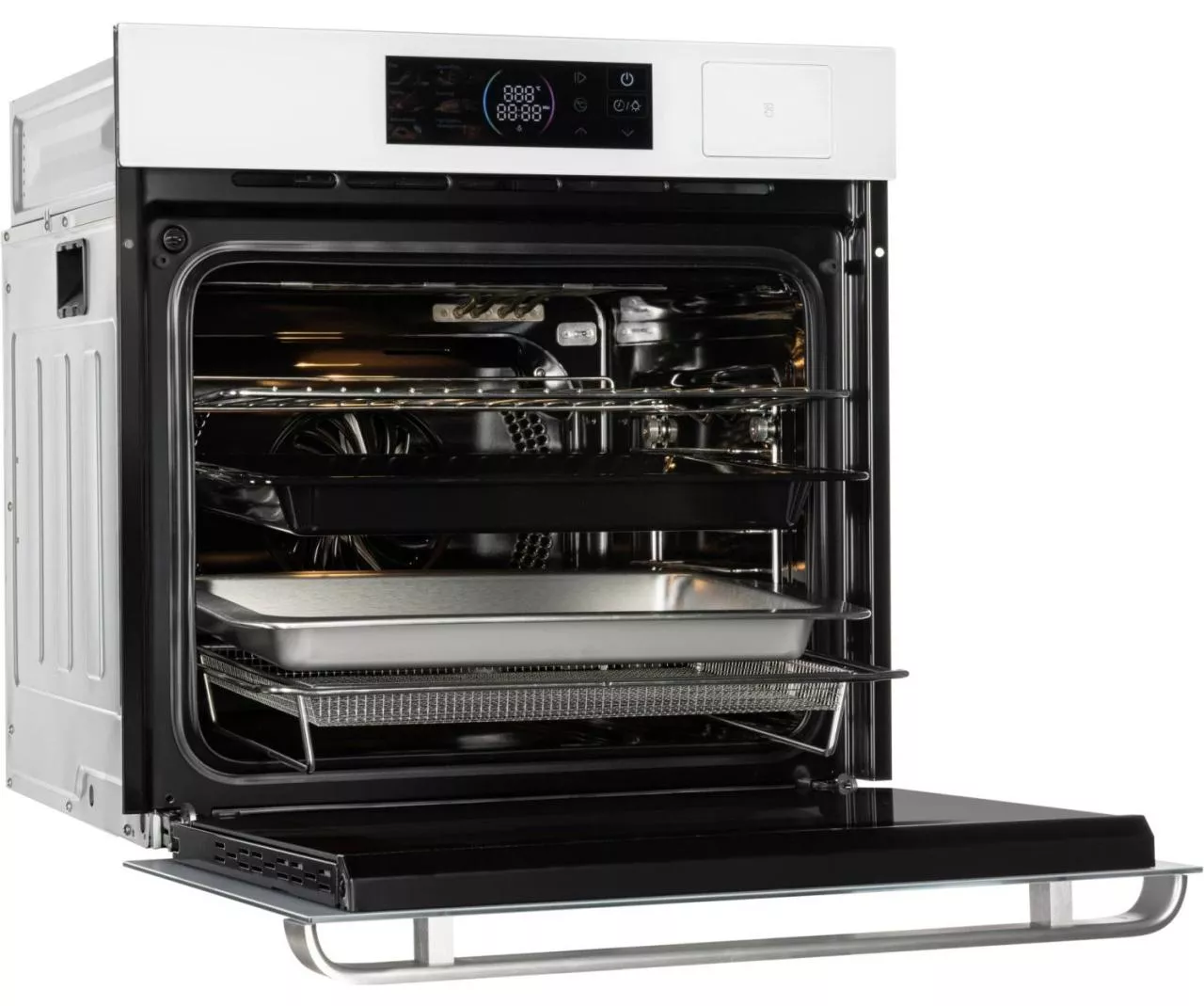 Разнообразие режимов, удобный таймер и наглядная индикация делают управление интуитивным. Тройное стекло двери и продуманная комплектация — от перфорированного и сетчатого противней до решётки — добавляют комфорта и расширяют возможности ежедневной кухни.