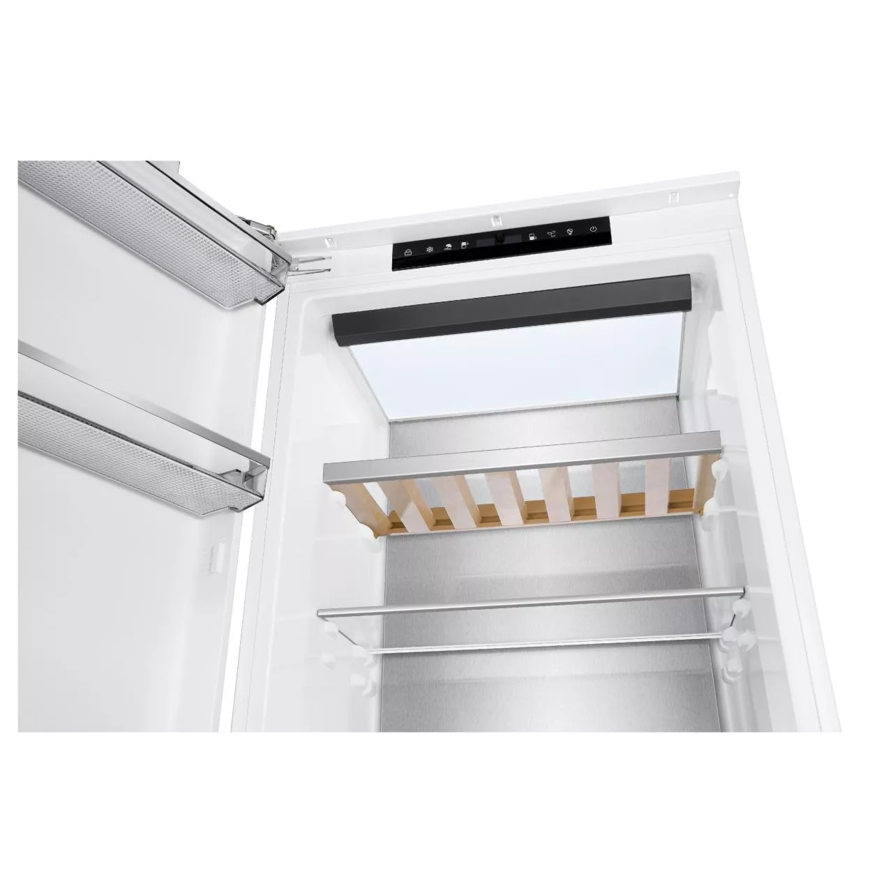 Уровень шума составляет всего 41 дБ, что делает его практически незаметным на фоне обычных домашних шумов. Индикация открытой двери предупреждает вас звуковым сигналом, чтобы предотвратить ненужное охлаждение и увеличение энергопотребления. Возможность перевешивания двери и жесткое крепление системы door on door обеспечивают удобство установки и использования.